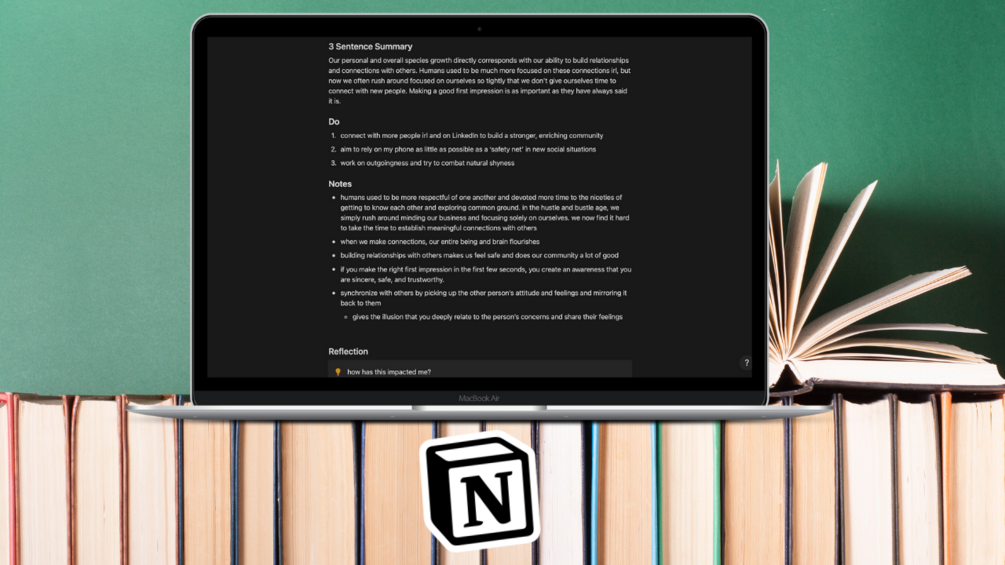 Finally implement the things you're spending time trying to learn! We spend so much time reading books, but if we aren't keeping track of the important parts of books that speak to us, it's just happening.